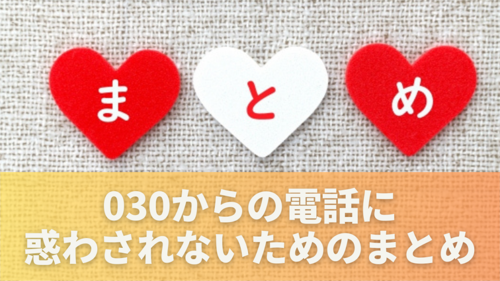 ここまで、030から始まる電話番号の正体や注意点、具体的な対策を見てきました。